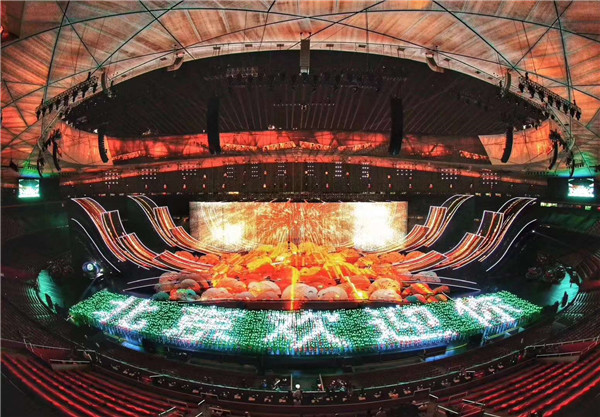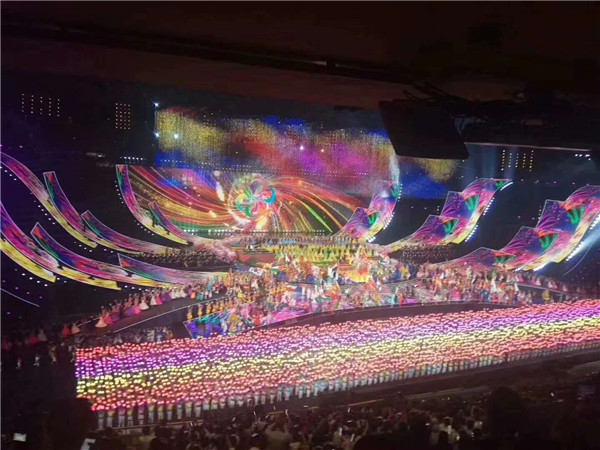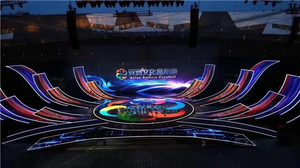 晚会现场,15000多平方米的主舞台焕彩多姿,尽情展示了亚洲各个国家、各个民族的迷人风采。超过10000平方米的LED显示屏绽放在鸟巢中央,时而如一朵巨大的牡丹花,盛开18朵花瓣,时而如系着云霞披风的孔雀, 煽动着壮硕的羽翎,可谓美轮美奂、万众瞩目。这一国家盛事的舞台显示由光祥科技打造,而舞台“C位”的巨型主显示屏和鸟巢“C位”的超炫“花瓣状”显示屏均由来利国际旗舰厅RGB事业部的1921户外显示器件华丽打造。